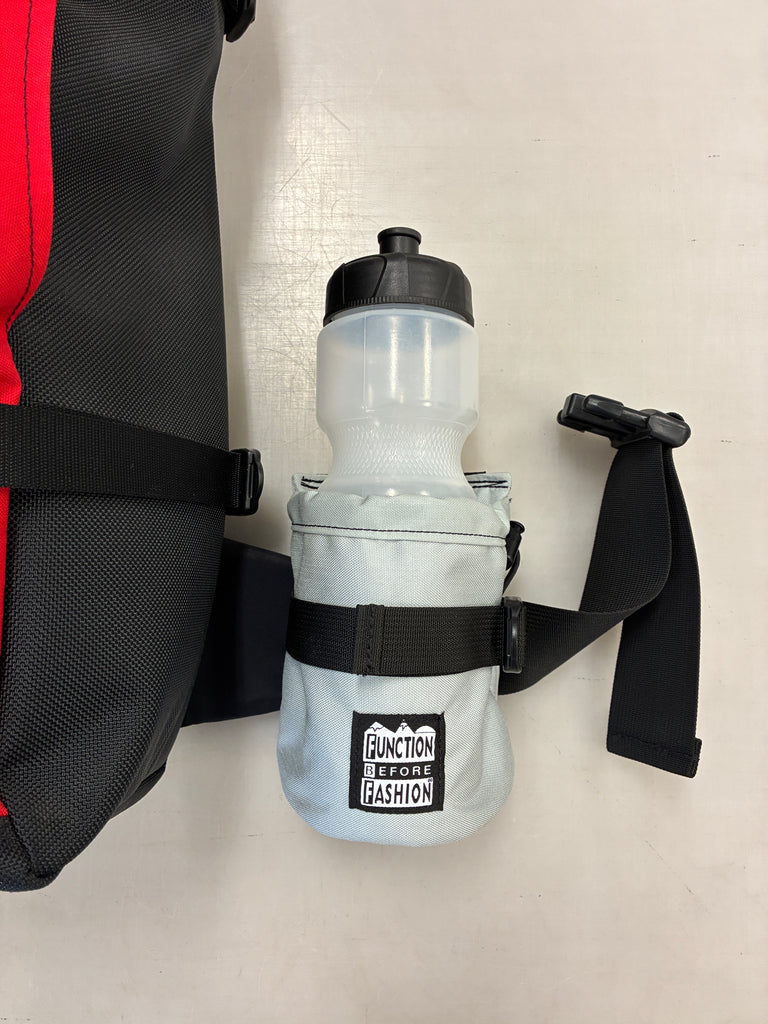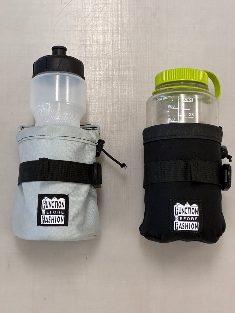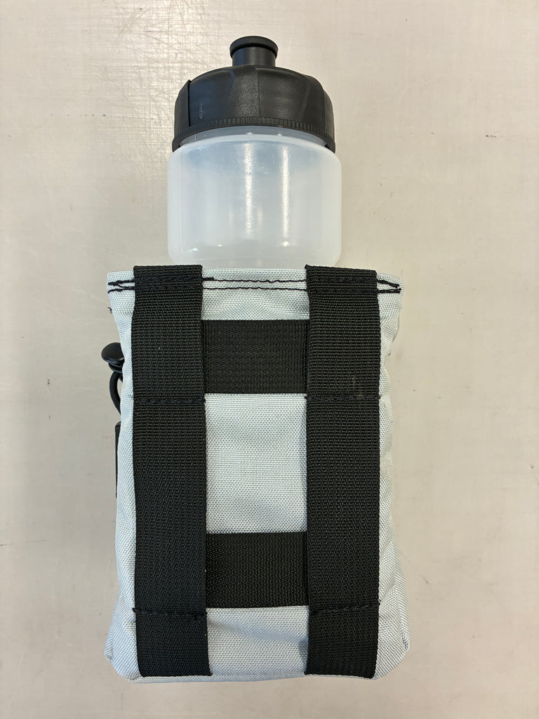 Attach water bottles or food to packs, bags, bikes etc. Rigid foam back with vertical and horizontal webbing loops allows for many mounting options. Elastic closure and compression strap keep the bottle secure.